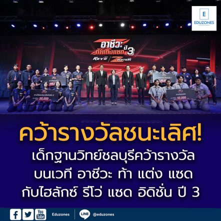 เด็กฐานวิทย์ชลบุรีคว้ารางวัลชนะเลิศ! บนเวที อาชีวะ ท้า แต่ง แซด กับไฮลักซ์ รีโว่ แซด อิดิชั่น ปี 3 EZ WebmasterMarch 13, 2026 วันที่ 11 มีนาคม 2569 นายยศพล เวณุโกเศศ เลขาธิการคณะกรรมการการอาชีวศึกษา มอบหมายให้ นางเบญวรรณ ปกป้อง ผู้อำนวยการสำนักความร่วมมือ เป็นประธานในพิธีประกาศผลและมอบรางวัลกิจกรรม อาชีวะ ท้า แต่ง แซด กับไฮลักซ์ รีโว่…