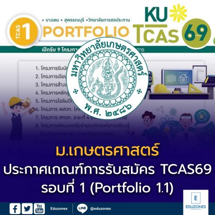 EZ Webmaster October 5, 2025 เกณฑ์การรับสมัคร TCAS69 รอบที่ 1 (Portfolio 1.1) มหาวิทยาลัยเกษตรศาสตร์ EZ Webmaster October 5, 2025 📣 ประกาศเกณฑ์การรับสมัคร TCAS69 รอบที่ 1 (Portfolio 1.1) มหาวิทยาลัยเกษตรศาสตร์ เปิดรับสมัคร 7 โครงการ 🎓 📌 ช่วงรับสมัคร: 15 ตุลาคม – 13 พฤศจิกายน 2568✅ โครงการที่เปิดรับ: โครงการรับนักกีฬาดีเด่นฯ โครงการเรียนล่วงหน้า โครงการช้างเผือก โครงการหลักสูตรนานาชาติและหลักสูตรภาษาอังกฤษ โครงการโอลิมปิกวิชาการ โครงการพัฒนาเครือข่ายองค์กรแห่งการเรียนรู้ด้านวิทยาศาสตร์ฯ (คณะวิทยาศาสตร์) โครงการศิลปวัฒนธรรมและซอฟต์พาวเวอร์ 🔗 อ่านรายละเอียดเพิ่มเติมได้ที่: https://admission.ku.ac.th Continue Reading