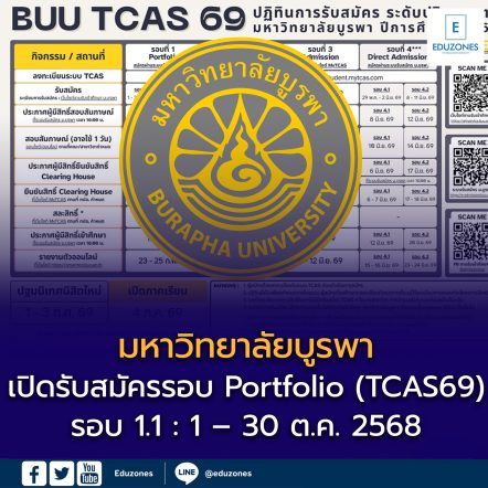 EZ Webmaster November 5, 2025 มหาวิทยาลัยบูรพา เปิดรับสมัครรอบ 1.2 (Portfolio) โครงการ นักเรียนที่มีความสามารถพิเศษทั่วประเทศ TCAS69 EZ Webmaster November 5, 2025 📣 มหาวิทยาลัยบูรพา เปิดรับสมัครรอบ 1.2 (Portfolio)โครงการ นักเรียนที่มีความสามารถพิเศษทั่วประเทศ #TCAS69 ✨ ✅ รายละเอียดการรับสมัคร 🗓 สมัครวันที่: 18 พฤศจิกายน – 11 ธันวาคม 2568💰 ค่าสมัคร: 500 บาท📍 สมัครได้ที่: http://regservice.buu.ac.th🔎 รายละเอียดเพิ่มเติม: คลิกที่นี่ 📌 คุณสมบัติผู้สมัคร ผู้สมัครต้องมีผลงานความสามารถพิเศษด้านใดด้านหนึ่ง เช่น🎓 วิชาการ | 🏅… Continue Reading