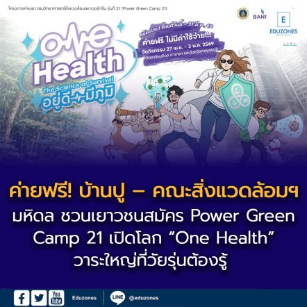 EZ Webmaster March 2, 2026 ค่ายฟรี! บ้านปู – คณะสิ่งแวดล้อมฯ มหิดล ชวนเยาวชนสมัคร Power Green Camp 21 เปิดโลก “One Health” วาระใหญ่ที่วัยรุ่นต้องรู้ EZ Webmaster March 2, 2026 บริษัท บ้านปู จำกัด (มหาชน) ร่วมกับ คณะสิ่งแวดล้อมและทรัพยากรศาสตร์ มหาวิทยาลัยมหิดล ชวนนักเรียนชั้นมัธยมศึกษาปีที่ 4-6 ทั่วประเทศ (ไม่จำกัดแผนการเรียน) หรือระดับประกาศนียบัตรวิชาชีพ (ปวช.) สมัครเข้าร่วมโครงการ “ค่ายเยาวชนวิทยาศาสตร์สิ่งแวดล้อมเพาเวอร์กรีน” (Power Green Camp) ครั้งที่ 21 ภายใต้แนวคิด “One Health: The Science of Survival – อยู่ดี มีภูมิ” เพื่อสร้างความเข้าใจเรื่อง “สุขภาพหนึ่งเดียว… Continue Reading