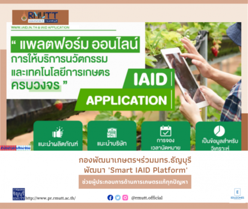 tui sakrapee August 9, 2021 กองพัฒนาเกษตรฯร่วมมทร.ธัญบุรี พัฒนา Smart IAID Platform ช่วยผู้ประกอบการด้านการเกษตรและการแปรรูปแก้ทุกปัญหา tui sakrapee August 9, 2021 Smart IAID Platform (Application, Website, FB Fanpage) หากคุณดำเนินธุรกิจด้านการเกษตรและการแปรรูป และประสบปัญหาเหล่านี้อยู่ – ผลผลิตที่ได้มีปริมาณและคุณภาพต่ำ – ขาดแคลนแรงงาน และดำเนินการผลิตโดยพึงพาธรรมชาติเป็นหลัก – มีไอเดียธุรกิจดี แต่ไม่มีโรงงาน/เครื่องจักรแปรรูปของตนเอง – ขาดประสบการณ์ด้านกระบวนการแปรรูปผลผลิตทางการเกษตร – รู้สึกยากในการหาผลิตภัณฑ์ที่เป็นอัตลักษณ์และได้มาตรฐานภายใต้ Brand ของคุณ – ต้นทุนการผลิตสูง กองพัฒนาเกษตรอุตสาหกรรม กรมส่งเสริมอุตสาหกรรม ร่วมกับ มหาวิทยาลัยเทคโนโลยีราชมงคลธัญบุรี ได้พัฒนา Smart IAID… Continue Reading