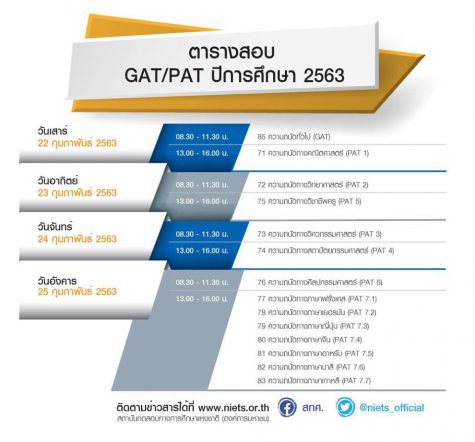 EZ Webmaster October 11, 2019 ตารางสอบและรายละเอียดกำหนดการสอบ GAT/PAT ปีการศึกษา 2563 EZ Webmaster October 11, 2019 รายละเอียดการสมัคร >> คลิก Continue Reading