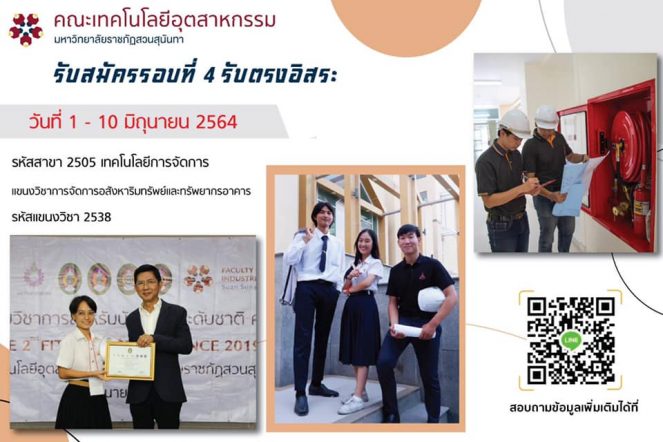 tui sakrapee May 18, 2021 หลักสูตรการจัดการอสังหาริมทรัพย์และทรัพยากรอาคาร สวนสุนันทา เรียนจบมีงานทำ 100% สายงานรองรับหลากหลาย เปิดรับรอบ 4 เริ่ม 1 มิ.ย.นี้ tui sakrapee May 18, 2021 คณะเทคโนโลยีอุตสาหกรรม มหาวิทยาลัยราชภัฏสวนสุนันทา เปิดรับสมัครนักศึกษาใหม่ ระดับปริญญาตรี ภาคปกติ ประจำปีการศึกษา 2564 รอบที่ 4 รับตรงอิสระ เริ่มเปิดรับสมัครวันที่ 1 – 10 มิถุนายน 2564 สมัครผ่านเว็บไซต์ทาง http://admission.ssru.ac.th/ เข้ากลุ่มคุยกับแอดมิน มหาวิทยาลัยราชภัฏสวนสุนันทา คุยกับแอดมินสวนสุนันทา : โทร/ID Line: 08-9008-8772 ฝ่ายรับสมัคร 021601380 และ Line: https://line.me/R/ti/g/Gc9AOINLIR หรือ Scan… Continue Reading