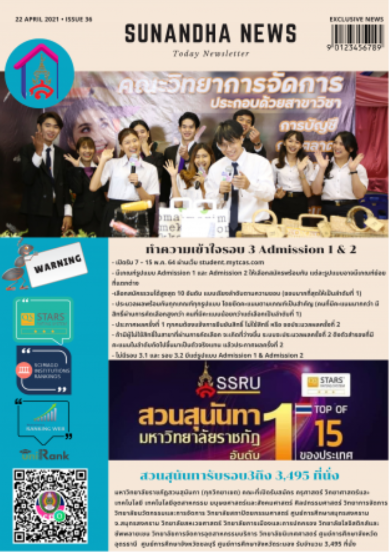 มทร.ธัญบุรี พร้อมปั้นบัณฑิตสู่ยุค NEXT GEN การันตีความสำเร็จด้วยคลื่นมหาชน tui sakrapeeDecember 4, 2025 มหาวิทยาลัยเทคโนโลยีราชมงคลธัญบุรี (มทร.ธัญบุรี) สร้างปรากฏการณ์ครั้งสำคัญในแวดวงการศึกษาไทยผ่านงาน ‘RMUTT NEXT GEN: Open House 2026 : เปิดประตูสู่ราชมงคลธัญบุรี 69’ เมื่อวันที่ 27 และ 28 พฤศจิกายน 2568… ม.กรุงเทพ จัดงาน The Shape of Tomorrow: Bangkok Art & Architecture @Dib Bangkok tui sakrapeeDecember 4, 2025 คณะสถาปัตยกรรมศาสตร์ มหาวิทยาลัยกรุงเทพ จัดงาน “The Shape of Tomorrow: Bangkok Art & Architecture” เปิดพื้นที่แลกเปลี่ยนองค์ความรู้และประสบการณ์ระหว่างนักวิชาการ ผู้เชี่ยวชาญในวงการสถาปัตยกรรมที่มุ่งเน้นแนวคิดการออกแบบที่ตอบโจทย์ความยั่งยืน (Sustainability) และการปรับใช้พื้นที่อาคารให้เกิดคุณค่าใหม่ (Adaptive Reuse) โดยปรับเปลี่ยนพื้นที่เดิมให้กลายเป็นพื้นที่สร้างสรรค์อย่าง… มหาวิทยาลัยราชภัฏสวนสุนันทา จับมือ “เอ็ม พาวเวอร์ คอร์ปอเรชั่น” ลงนาม MOU ขับเคลื่อนระบบจัดการวัสดุรีไซเคิล สู่มหาวิทยาลัยสีเขียวอย่างยั่งยืน tui sakrapeeDecember 4, 2025 เมื่อวันพฤหัสบดีที่ 4 ธันวาคม 2568 มหาวิทยาลัยราชภัฏสวนสุนันทา จัดพิธีลงนามบันทึกความเข้าใจ (MOU) ร่วมกับบริษัท เอ็ม พาวเวอร์ คอร์ปอเรชั่น จำกัด ณ ห้องประชุมสภามหาวิทยาลัย เพื่อขับเคลื่อนการพัฒนาระบบการจัดการวัสดุรีไซเคิลภายในมหาวิทยาลัยอย่างเป็นรูปธรรมและยั่งยืน พิธีลงนามในครั้งนี้มีวัตถุประสงค์เพื่อพัฒนากลไกการจัดการวัสดุรีไซเคิลให้มีประสิทธิภาพยิ่งขึ้น ส่งเสริมการคัดแยกขยะอย่างถูกต้อง เพิ่มคุณค่าและสร้างรายได้จากวัสดุที่สามารถนำกลับมาใช้ใหม่… สุดเจ๋ง! สถานศึกษาอาชีวะ รับรางวัลโครงการชีววิถีฯ ระดับประเทศ ประจำปี 2568 สานต่อปณิธานหลักปรัชญาเศรษฐกิจพอเพียงของพ่อหลวงรัชกาลที่ 9 EZ WebmasterDecember 3, 2025 สุดเจ๋ง! สถานศึกษาอาชีวะ รับรางวัลโครงการชีววิถีฯ ระดับประเทศ ประจำปี 2568 สานต่อปณิธานหลักปรัชญาเศรษฐกิจพอเพียงของพ่อหลวงรัชกาลที่ 9 วันนี้ (1 ธ.ค. 68) นายยศพล เวณุโกเศศ เลขาธิการคณะกรรมการการอาชีวศึกษา มอบหมายให้ นายสง่า แต่เชื้อสาย… Search for: Search Tag: TCAS64 tui sakrapee April 22, 2021 รอบ 3 มาแล้ว! #TCAS64สวนสุนันทา (Admission 1-2) เริ่ม 7พ.ค.นี้ มีถึง 3,495 ที่นั่ง tui sakrapee April 22, 2021 มหาวิทยาลัยราชภัฏสวนสุนันทา (ทุกวิทยาเขต) เปิดรับสมัครคัดเลือกบุคคลเพื่อเข้าศึกษาต่อในระดับปริญญาตรี รอบที่ 3 (Admission 1 & Admission 2) ประจำปีการศึกษา 2564 โดยจะเปิดรับสมัครตั้งแต่วันที่ 7-15 พฤษภาคม 2564 จำนวนรับ 3,495 ที่นั่ง คณะที่เปิดรับสมัคร Admission 1 -คณะครุศาสตร์ -คณะวิทยาศาสตร์และเทคโนโลยี -คณะเทคโนโลยีอุตสาหกรรม -คณะมนุษยศาสตร์และสังคมศาสตร์ -คณะศิลปกรรมศาสตร์ -คณะวิทยาการจัดการ -วิทยาลัยนวัตกรรมและการจัดการ -วิทยาลัยสถาปัตยกรรมศ