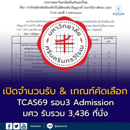 EZ Webmaster April 10, 2026 เปิดจำนวนรับ & เกณฑ์คัดเลือก TCAS69 รอบ Admission “มศว” รวม 3,436 ที่นั่ง ครบทุกคณะ EZ Webmaster April 10, 2026 📊 เปิดจำนวนรับ TCAS69 รอบ Admission “มศว” รวม 3,436 ที่นั่ง ครบทุกคณะ มหาวิทยาลัยศรีนครินทรวิโรฒ (มศว) ประกาศจำนวนรับนักศึกษาใหม่ในระบบ TCAS69 รอบที่ 3 Admission อย่างเป็นทางการแล้ว โดยปีนี้เปิดรับรวมทั้งสิ้น 3,436 ที่นั่ง ครอบคลุมหลากหลายคณะและสาขาวิชา ถือเป็นอีกหนึ่งมหาวิทยาลัยยอดนิยมของเด็ก TCAS ที่มีตัวเลือกสายเรียนครบ ทั้งวิทย์-สุขภาพ สังคม ศิลปะ และสายอาชีพเฉพาะทาง 🎯 ภาพรวมจำนวนรับ TCAS69… Continue Reading